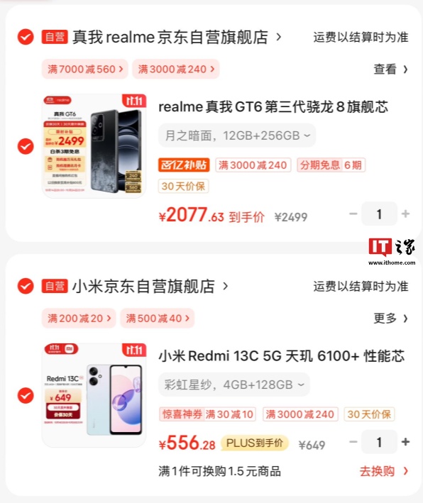 文章来源于互联网:IT之家-骁龙 8 Gen 3 手机仅 2077 元:realme GT6 国补 + 百补新低