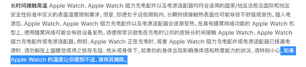 苹果还提醒用户,如果Apple Watch的温度让你感到不适,请将其摘除。
