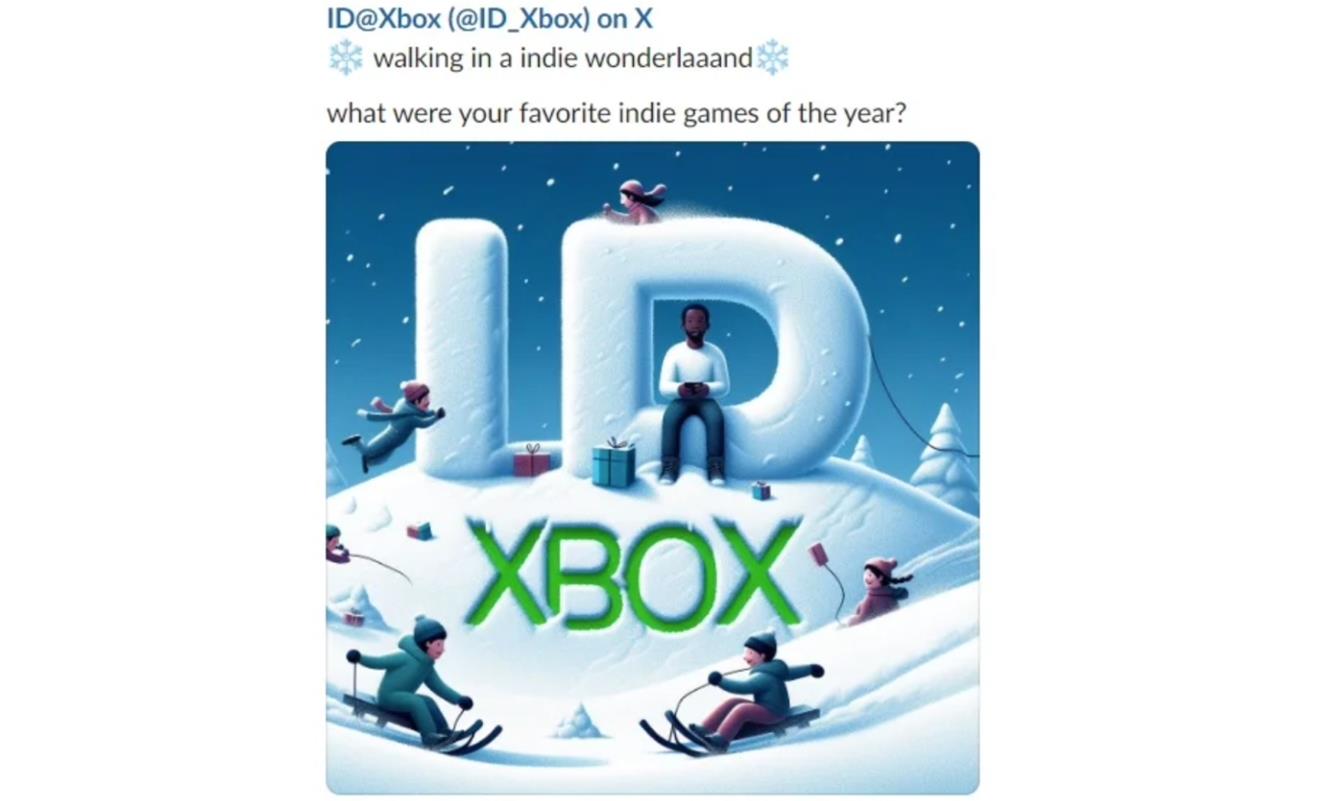 据报道,微软Microsoft因AI生成图片质量差,引发独立游戏开发者、艺术家和游戏玩家不满。微软官方ID@Xbox账号近日在X平台发布推文,询问粉丝今年最喜欢的独立游戏是哪款,然而配图却引发争议。
