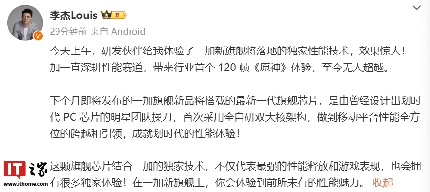 以狂野性能著称的一加也将推出搭载全新骁龙 8 旗舰平台的一加 13 系列,相信会让我们感受到极致的性能。此前一加中国区总裁李杰也透露称将在新旗舰中带来划时代的性能体验,无疑更加让人期待骁龙 8 至尊版的实际表现。