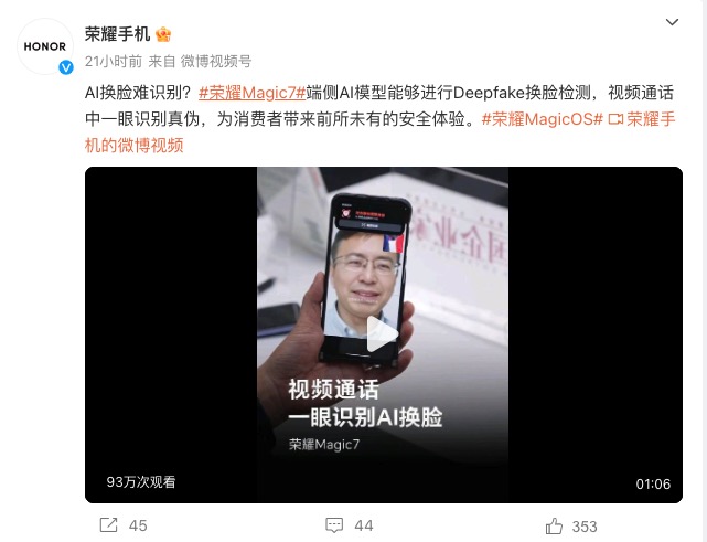 这其中,有将在 10 月 23 日登场的全新荣耀 Magic7 系列,在全新骁龙移动平台的加持下,荣耀 Magic7 系列将能实现一句话智能发送文档、一句话点外卖,甚至是利用端侧 AI 模型进行 Deepfake 换脸检测等智慧体验。