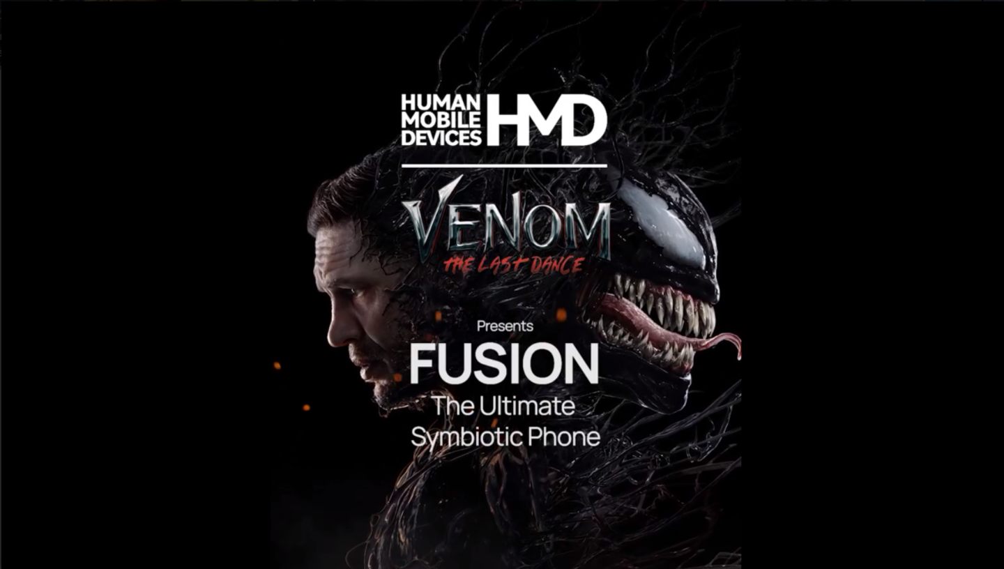 HMD 晒出的预告显示,一款黑色的 HMD 手机被毒液包围,然后画面中出现了《毒液 3:最后一舞》的电影海报。