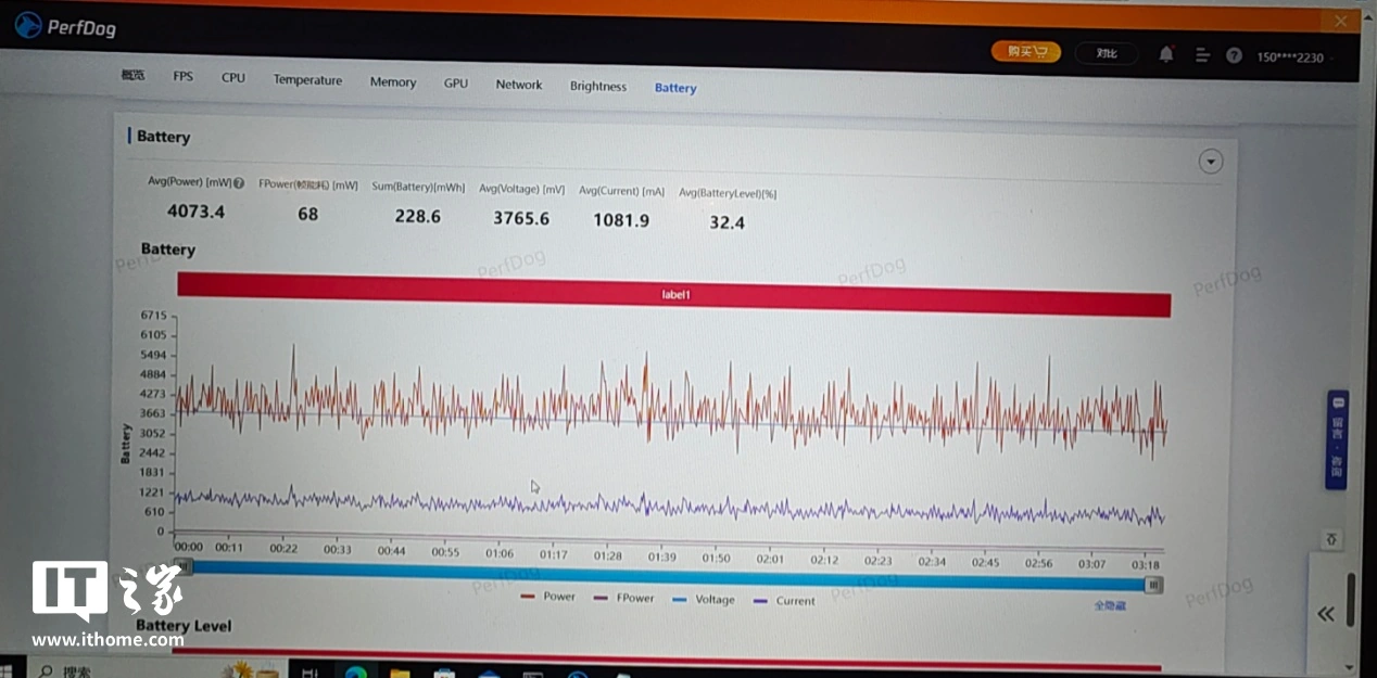 进行 4 分钟左右的测试后,可以看到游戏的平均帧率达到了 60.2 FPS,而功耗则降低到了 3.3W,降幅可以达到 20% 左右。