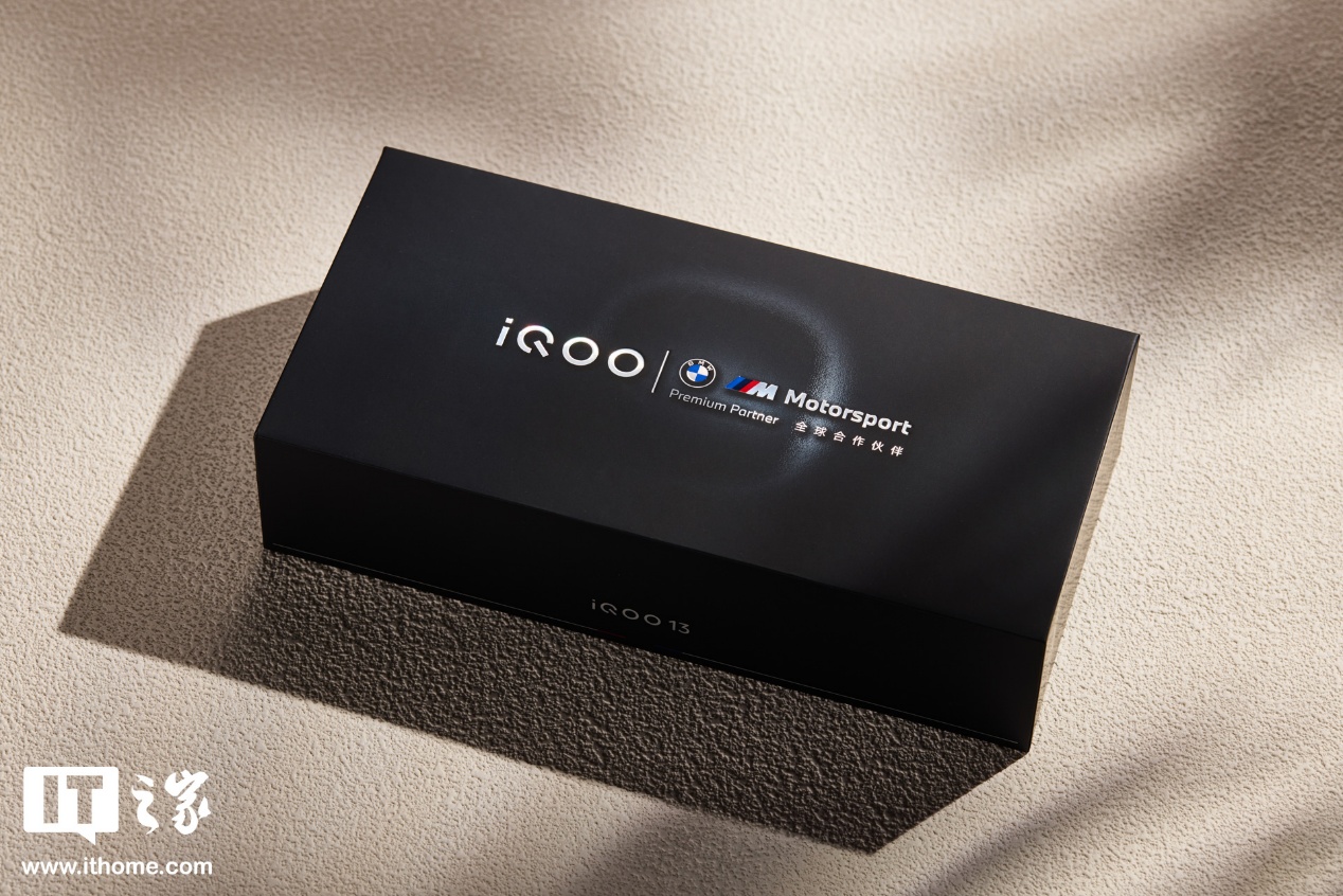 iQOO 13 这次提供四种配色,分别是赛道版(深灰)、传奇版(白色)、纳多灰以及曼岛配色。这四款配色中有三个都是 iQOO 系列手机的经典配色,而IT之家这次拿到的是赛道版。产品包装盒采用黑色长方形天包地设计,正面印有 iQOO Logo 和 BMW 合作标识,背后还有隐约可见的相机模组轮廓。