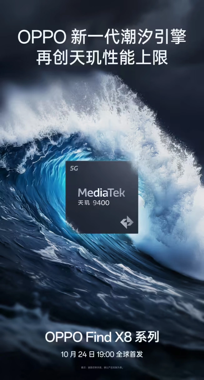 OPPO Find X8 系列将首发搭载全新一代 OPPO 潮汐引擎与 MediaTek 天玑 9400 旗舰芯片的最强性能能效技术组合,配合 Find X8 系列全新一代冰川电池,实现手感轻薄、帧率稳定、续航持久三种体验的共存。