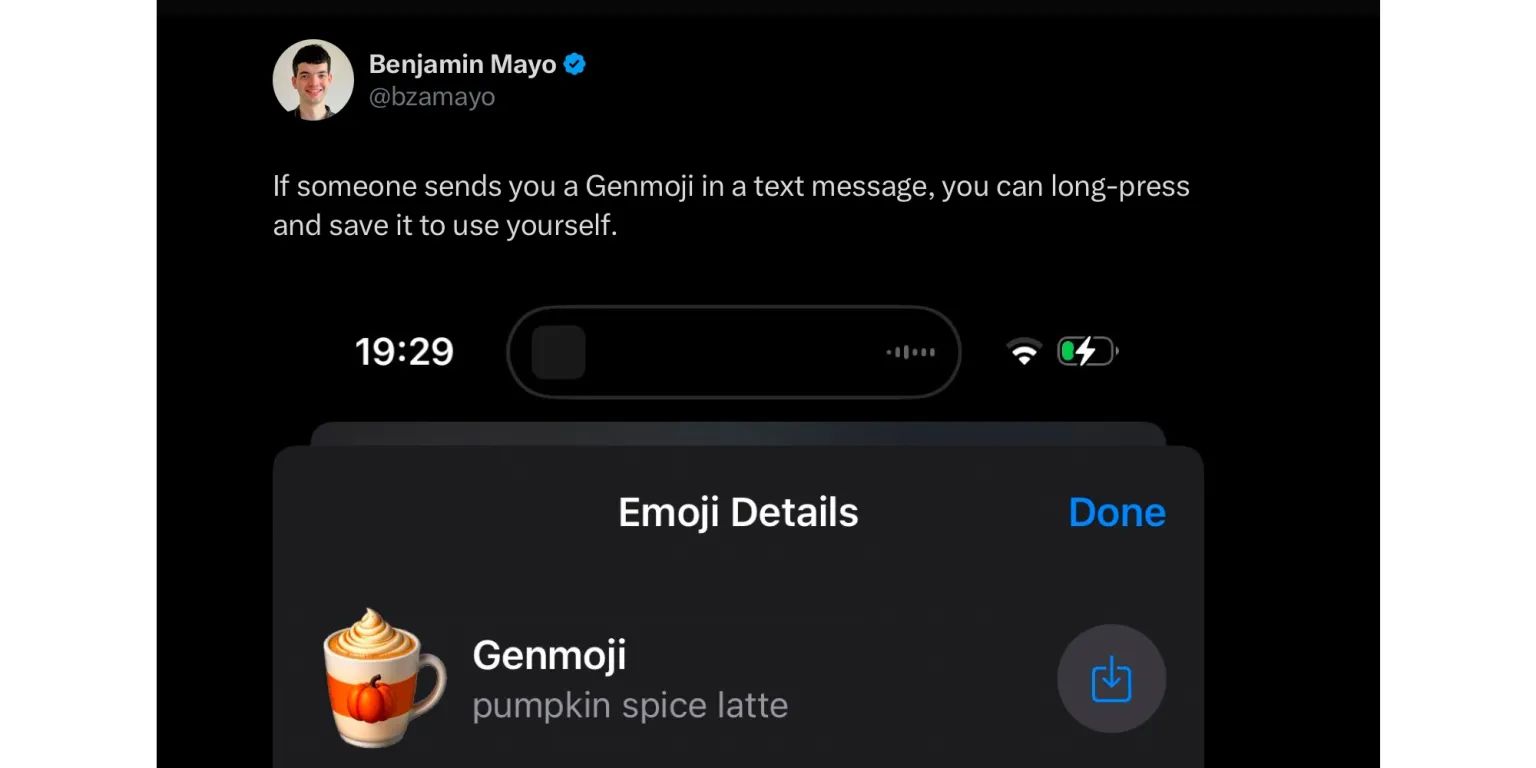 首先是读取显示方面:苹果表示任意用户都能接受显示 Genmoji 生成的定制 Emoji 表情,不过仅显示为图片。而且用户可以收藏这些生成的 Emoji,并在后续的聊天中使用。