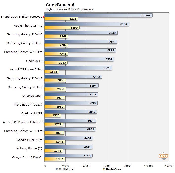 IT之家 10 月 24 日消息,科技媒体 hothardware 今天(10 月 24 日)发布博文,分享了高通骁龙 8 至尊版旗舰芯片的多项跑分数据,从 GeekBench 6 的跑分数据来看,多核成绩明显优于 iPhone 16 Pro 机型。