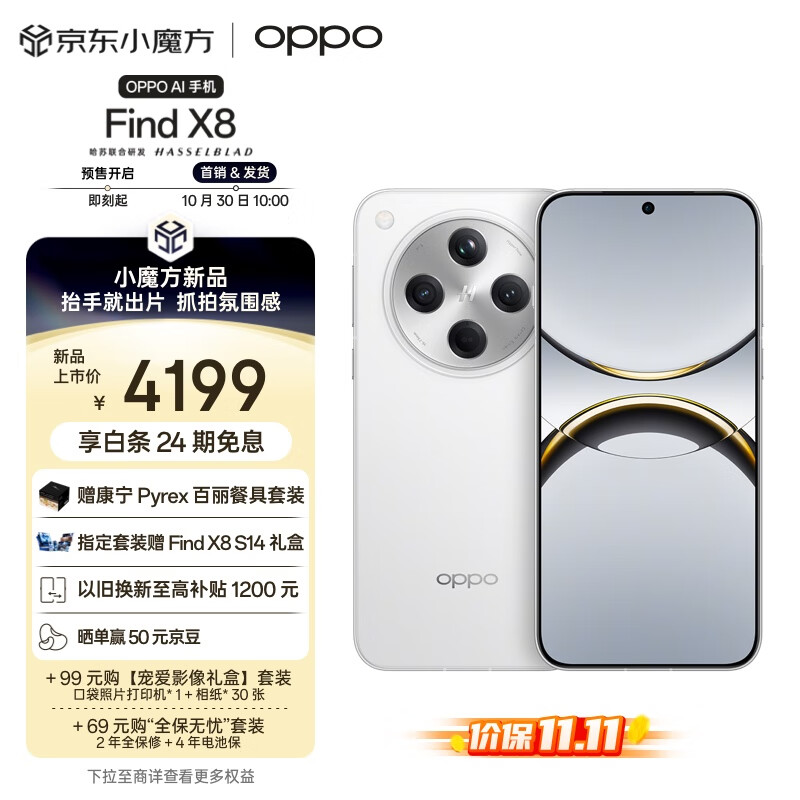 京东 OPPO Find X8 12GB+256GB 浮光白 4199 元直达链接