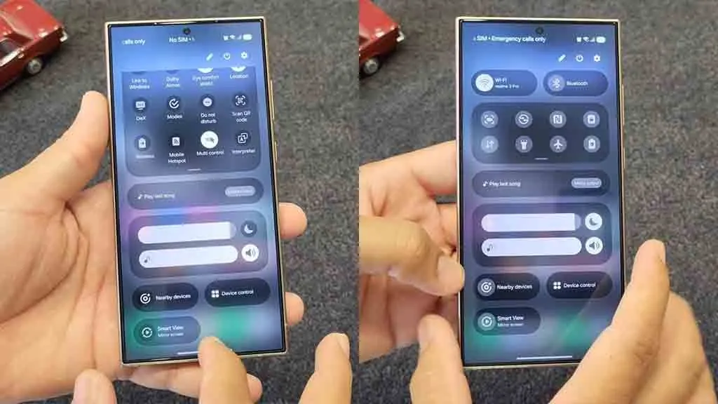 在 One UI 7 中,快速设置面板相比 One UI 6 更加精致和实用,三星还优化背景透明度和模糊设置,让组件和布局看起来更加动态。