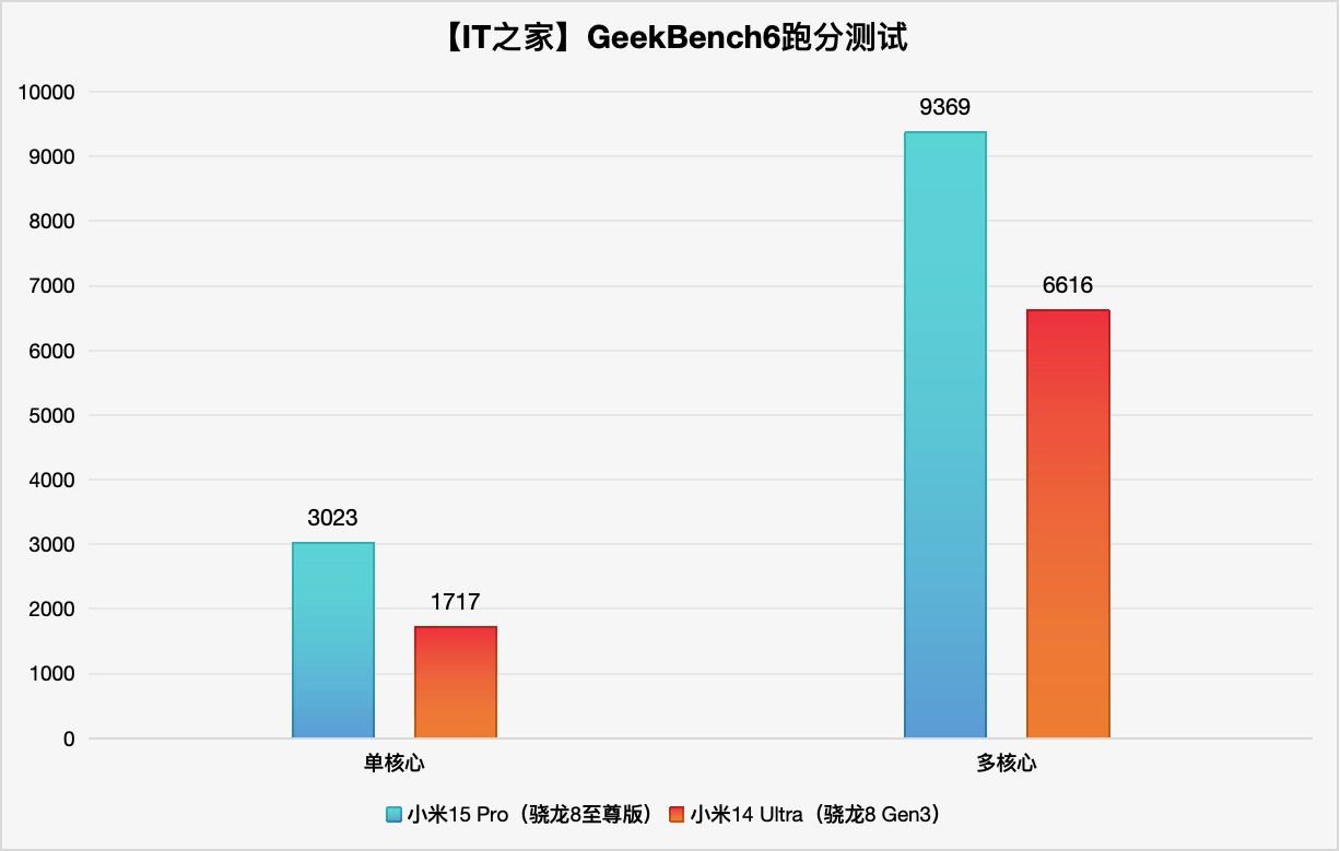 相比之下,小米 15 Pro 目前的分数已经非常高了。作为参考,IT之家实测搭载骁龙 8 Gen 3 的小米 14 Ultra 的单核分数为 1717 分,多核分数为 6616 分。