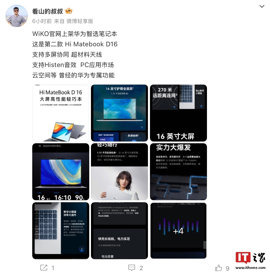 文章来源于互联网:凤凰网-WiKO Hi Matebook D16华为智选笔记本公布,搭i5-13500H处理器