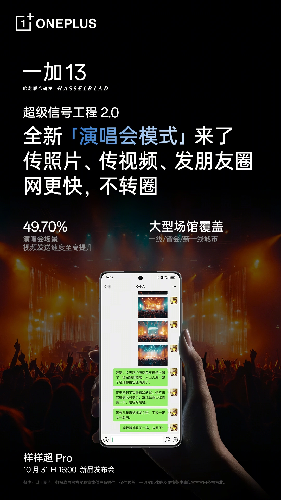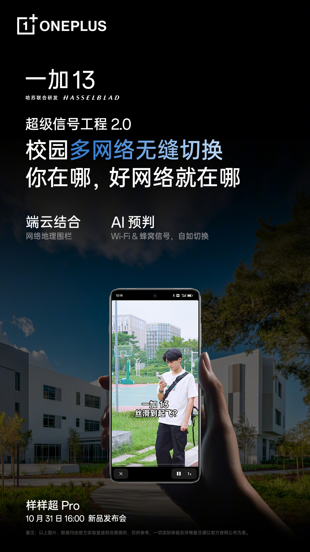 一加 13 手机还搭载超级信号工程 2.0,对蓝牙、网络、信号等进行了优化。官方称该功能提供新一代「高铁 / 地铁模式」、「演唱会模式」、校园网络无缝切换、地库 / 电梯 / 高速路网络优化等能力,支持 Wi-Fi & 蜂窝信号 AI 预判切换功能。
