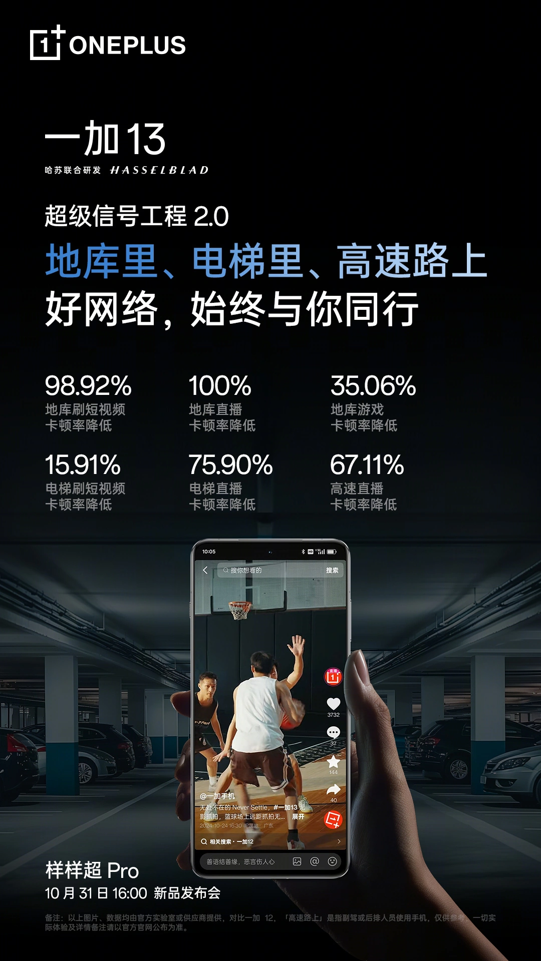 IT之家 10 月 27 日消息,一加 13 手机将于 10 月 31 日 16:00 发布,新机将搭载骁龙 8 至尊版处理器,提供 24GB+1TB 存储组合、第二代天工散热系统 Pro。