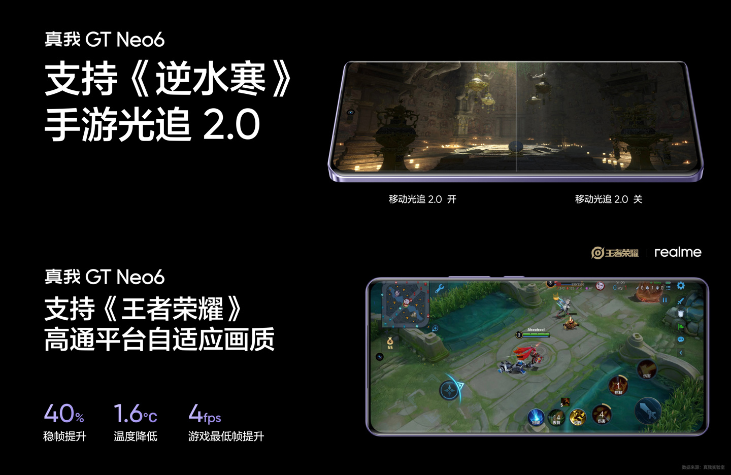 官方公布数据显示,该机测试《王者荣耀》120 帧 + 极致画质平均帧率 120.1,最高温度 43℃;《原神》60 帧 + 极致画质:平均帧率 59.85,最高温度 42.5℃。