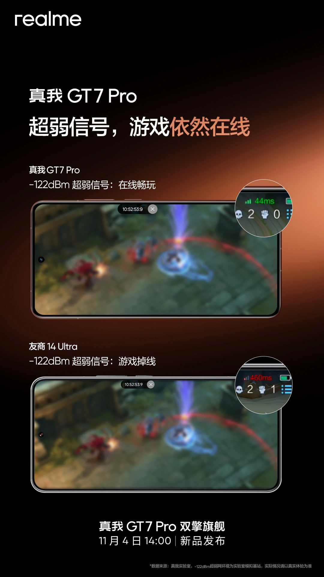 IT之家 10 月 29 日消息, realme 真我手机今日继续对将于 11 月 4 日发布的 GT7 Pro 进行预热,新机将首发“苍穹通信系统 2.0”,支持弱网场景游戏在线特性。