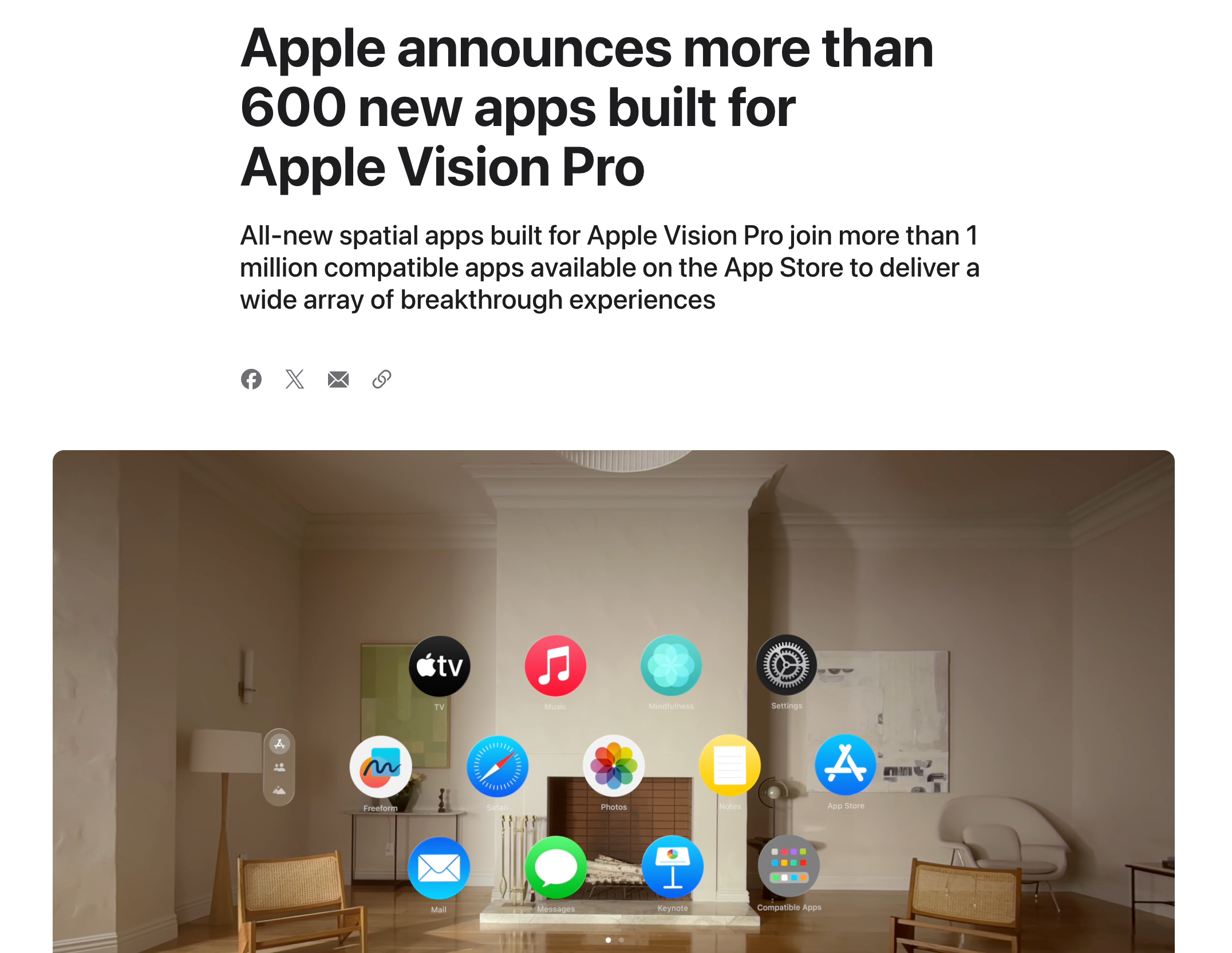 另外在 Vision Pro 发售前一天,苹果官宣 visionOS 上已经有了 600 多款专为 Vision Pro 打造的新应用,还有超过 100 万个兼容的 iPadOS 应用。但在此之后,苹果几乎就没有再更新过这两个数字。