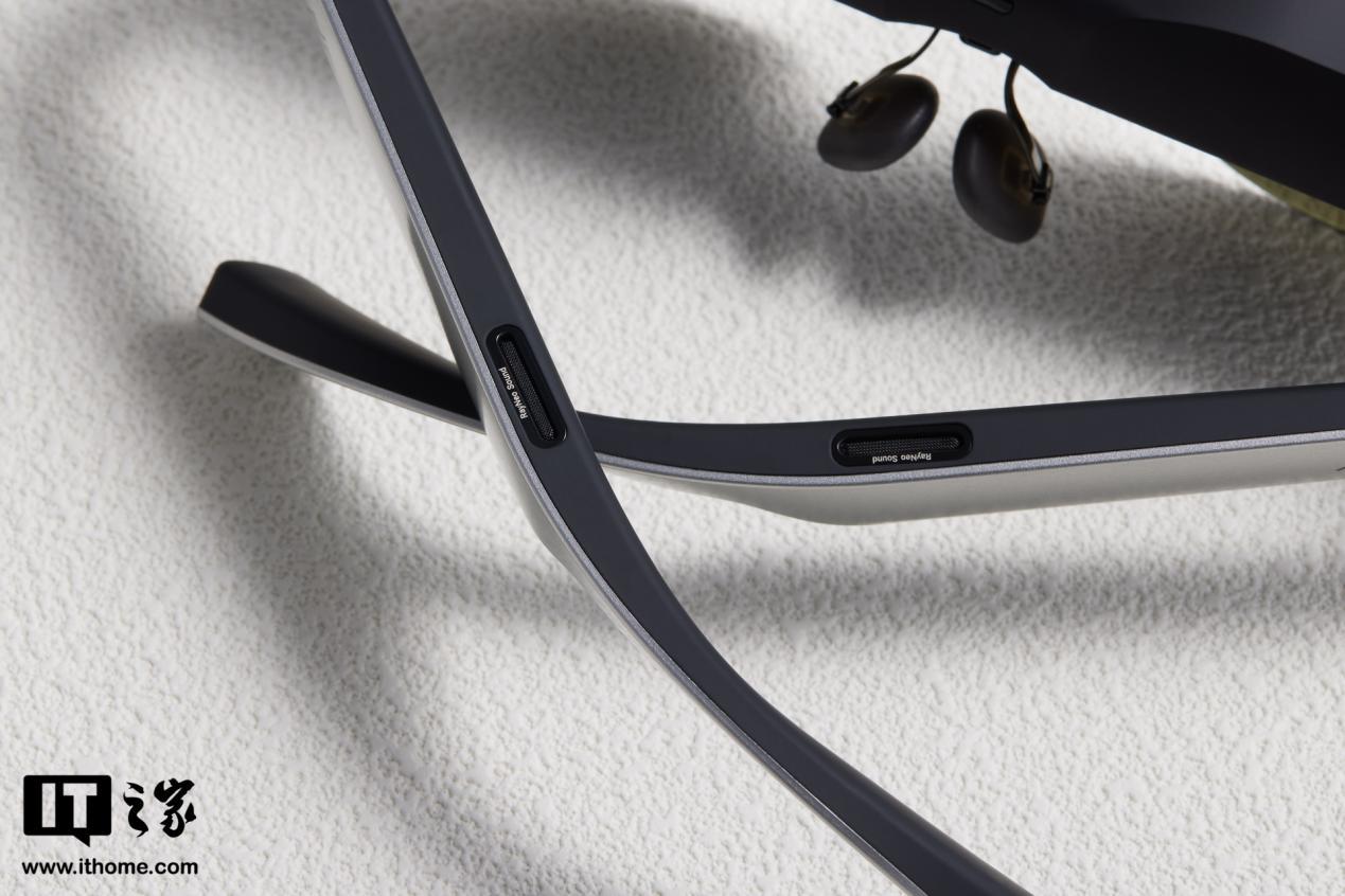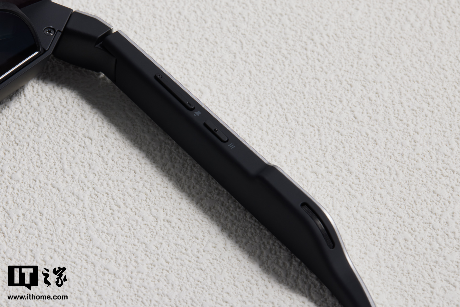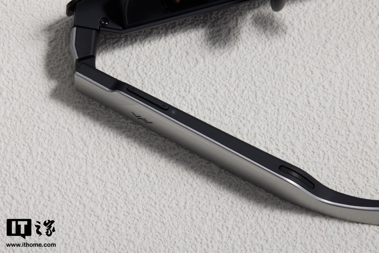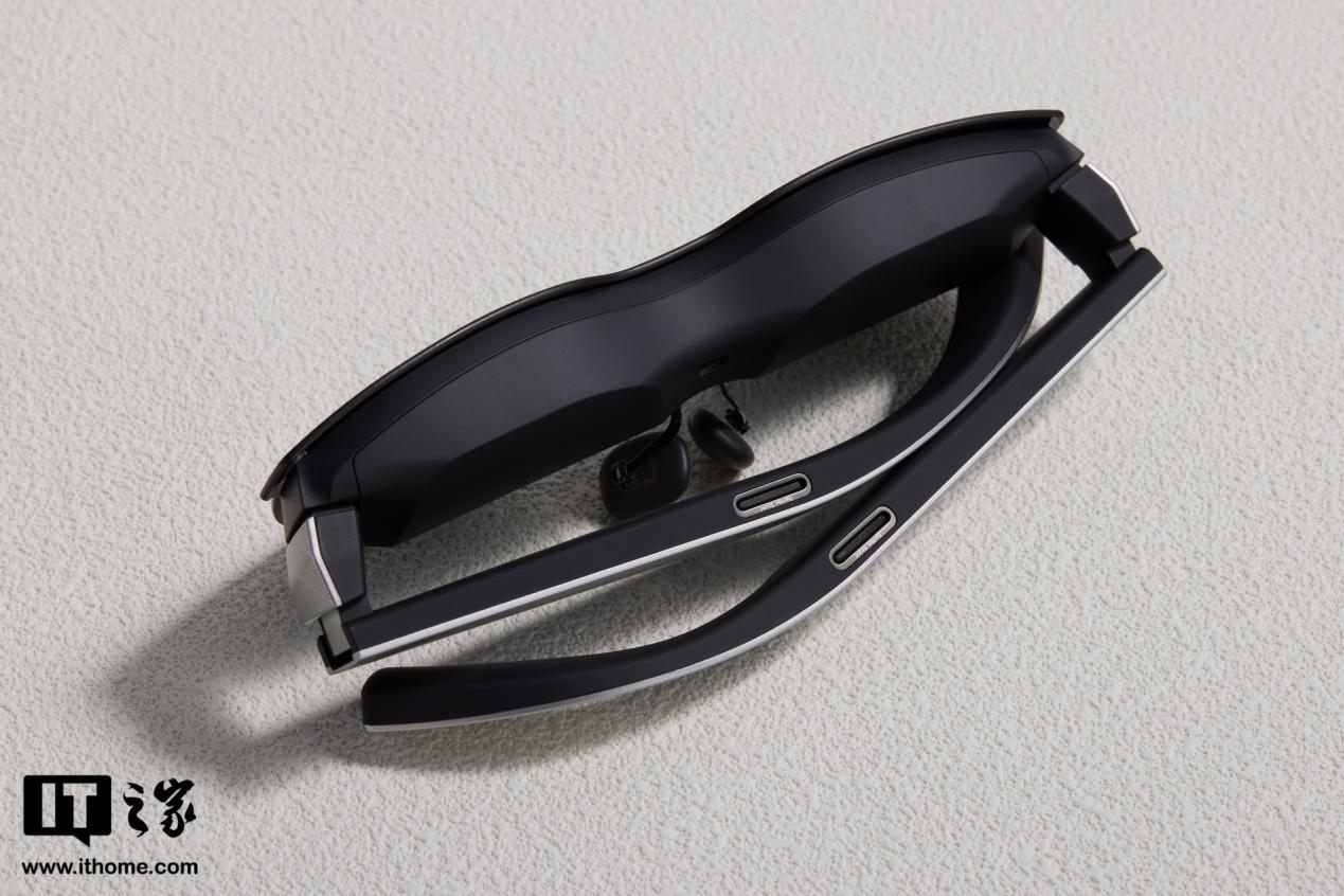 左右镜腿各有两处扬声器,左镜腿下方右音量键和菜单功能键,右镜腿下方则是亮度调节按键,尾部还有一枚 USB-C 接口。
