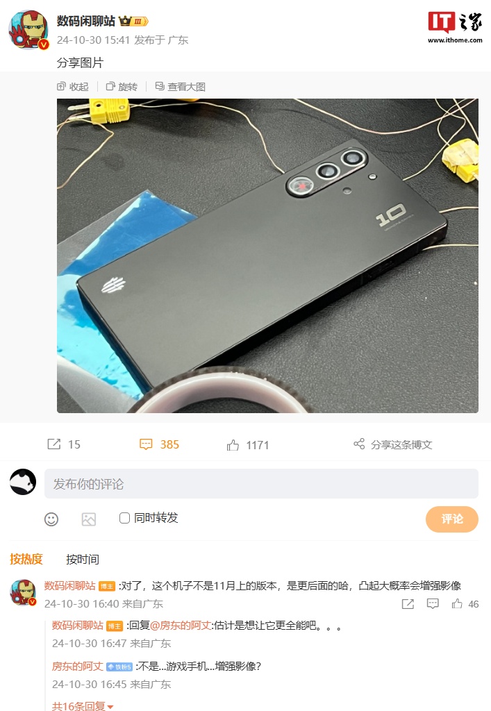 博主在评论区中补充说明“这个机子不是 11 月上的版本,是更后面的哈,凸起大概率会增强影像”。