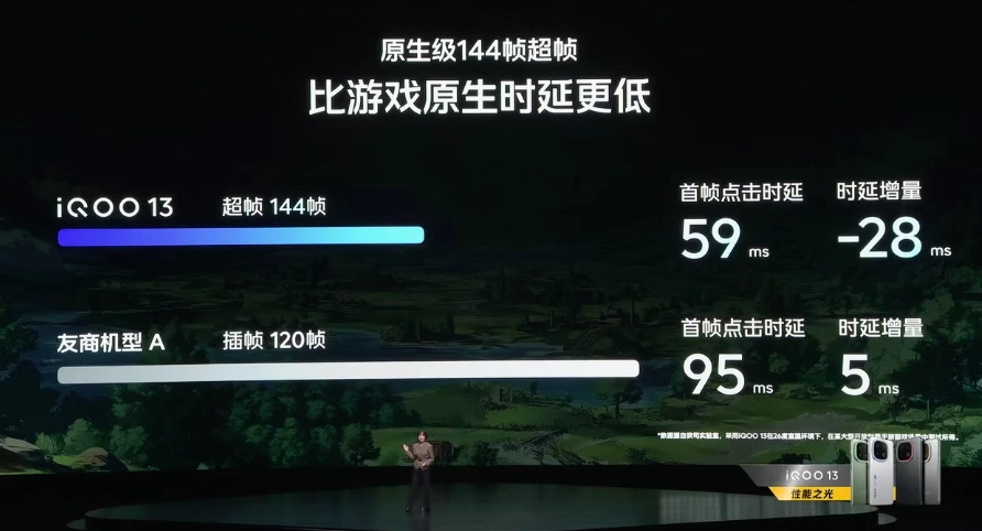iQOO 13 手机还首发《永劫无间》手游极致画质 60 帧动作模式、《暗区突围》手游 90 帧 + 全地图光线追踪、《崩坏:星穹铁道》GSS 技术。新机还挑战了《原神》手游原生 60 帧模式 + 极限画质 12 小时稳帧,新机号称百大游戏“无限稳帧”。