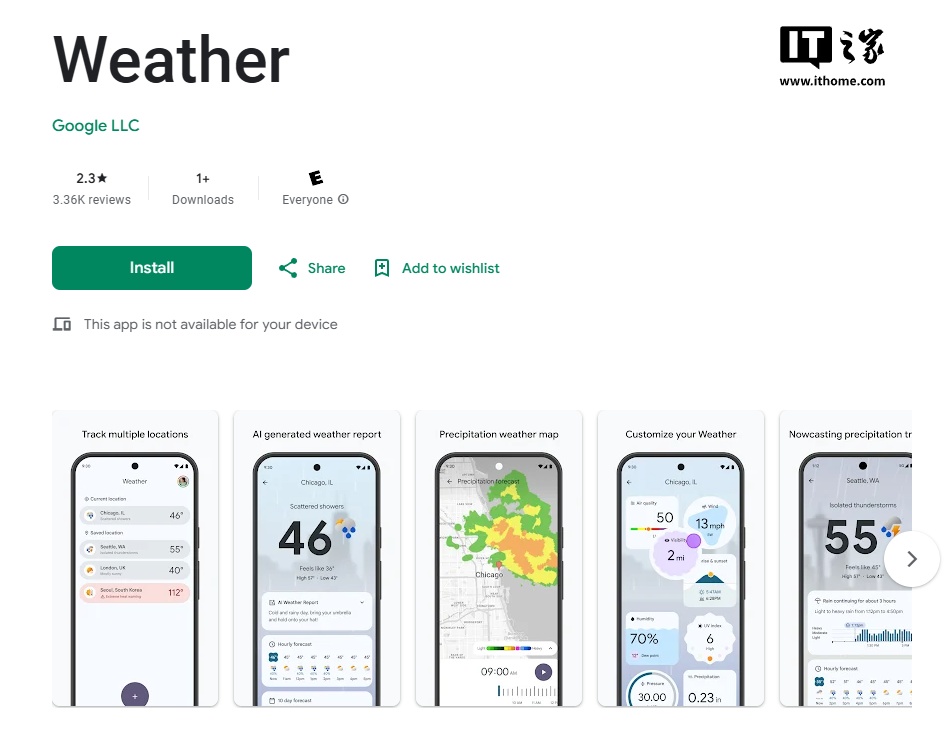 文章来源于互联网:IT之家-谷歌推出全新独立天气应用:AI 总结天气,老款 Pixel 手机也能用