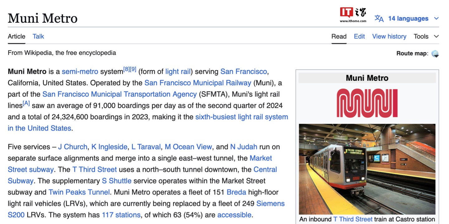 IT之家 11 月 1 日消息,据《旧金山纪事报》报道,美国旧金山城市交通局 (SFMTA) 现已与日本日立公司签订一份价值 2.12 亿美元(IT之家备注:当前约 15.11 亿元人民币)的合同,以淘汰旧金山城市铁路中的轻轨系统(Muni Metro)中基于软盘的控制系统运行。