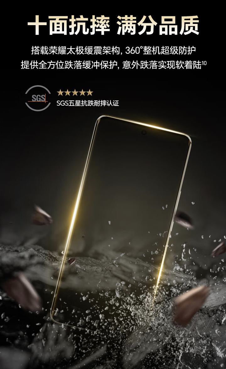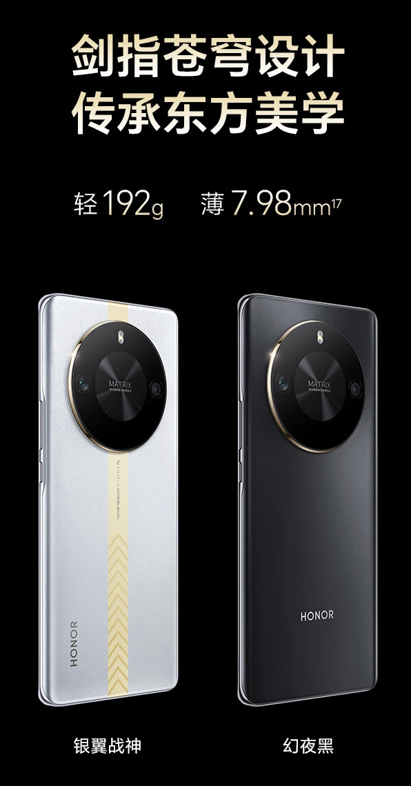 外观方面,荣耀 X50 GT 手机厚 7.98mm,重 192 克,配备后置星际舷窗双摄模组,提供幻夜黑、银翼战神 2 款配色,采用“战神防护体系”,通过了 SGS 整机五星抗跌耐摔认证,整机支持“十面抗摔”。