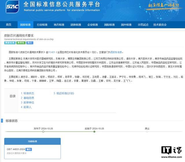 IT之家 11 月 4 日消息,据东南大学苏州医疗器械研究院消息,10 月 26 日,由该院顾忠泽教授团队牵头完成的我国首个器官芯片领域的国家标准 GB / T 44831-2024《皮肤芯片通用技术要求》正式发布。