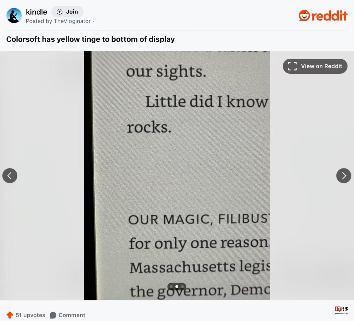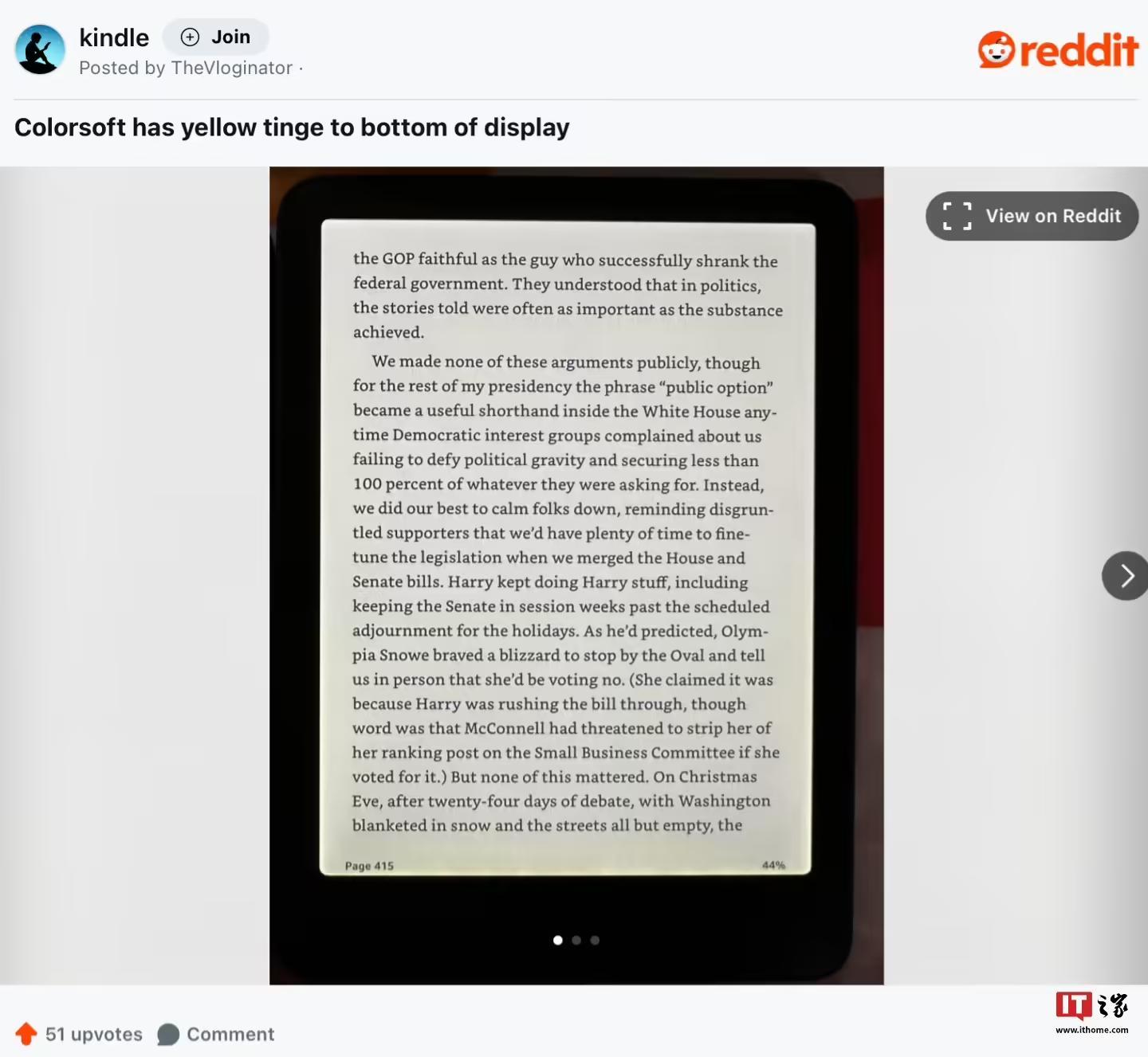 文章来源于互联网:凤凰网-亚马逊首款彩墨屏电纸书Kindle Colorsoft曝“背光不均”,官方回应称“软件问题、正进行修复”
