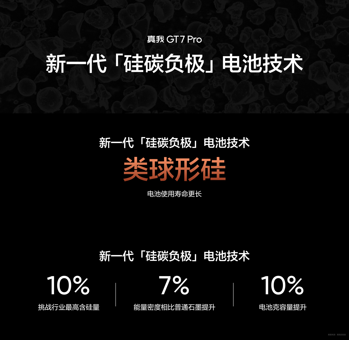 realme 真我 GT7 Pro 手机 × 宁德新能源联合首发 6500mAh「泰坦电池」,采用新一代硅碳负极电池技术,含硅量 10%、能量密度相比普通石墨提升 7%、电池克容量提升 10%。
