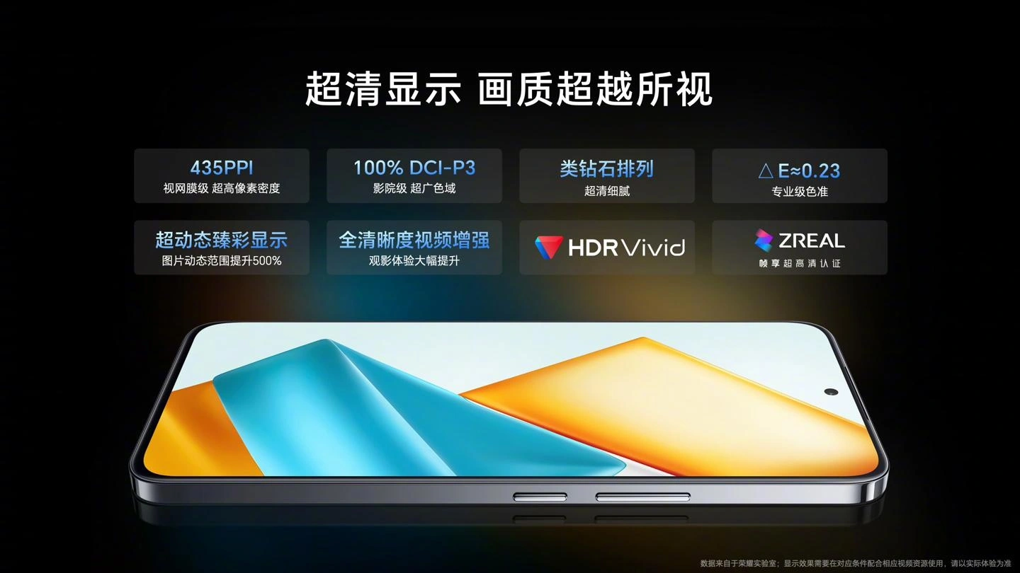 显示方面,该机采用了 6.7 英寸的“荣耀绿洲护眼屏”,拥有 2664×1200 分辨率 120Hz 刷新率,支持 3840Hz 高频 PWM 调光,全局峰值亮度 1200nit,局部峰值亮度 2600nit,支持 10.7 亿色、100% DCI-P3 色域,支持类自然光护眼、360° 自适应调光技术、助眠显示等技术。