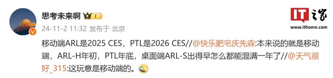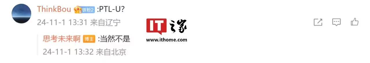 IT之家 11 月 5 日消息,联想产品经理 @思考未来啊 本月 2 日在微博动态中表示,英特尔将于后年初的 CES 2026 上发布 Panther Lake 处理器的移动端版本。