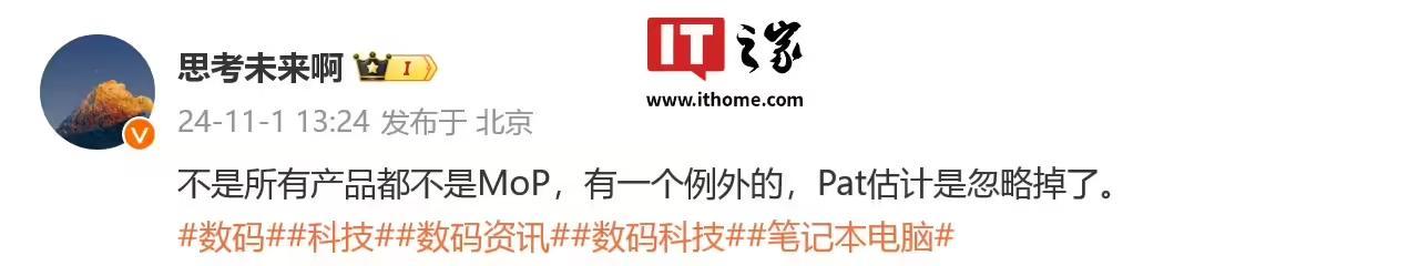 @思考未来啊 在本月 1 日还提到,英特尔并非未来全部产品都不会采用处理器集成内存的 MoP 封装,存在一个“例外”,且这个例外不会是 Panther Lake-U。
