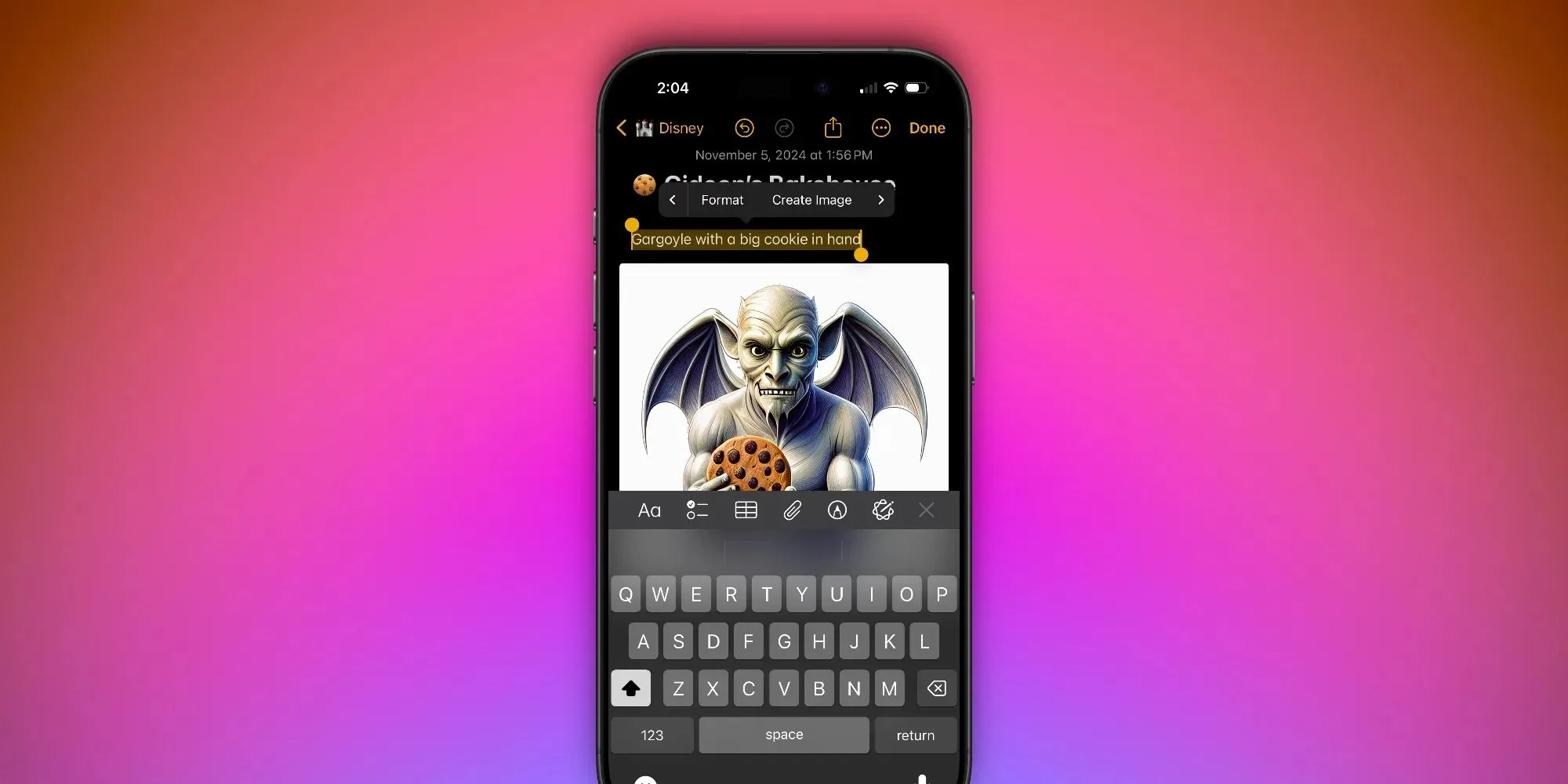 此外 Image Wand 也支持文生图,即使没有基础草图,用户也可以根据备忘录中的文本内容生成符合主题的原创图像。