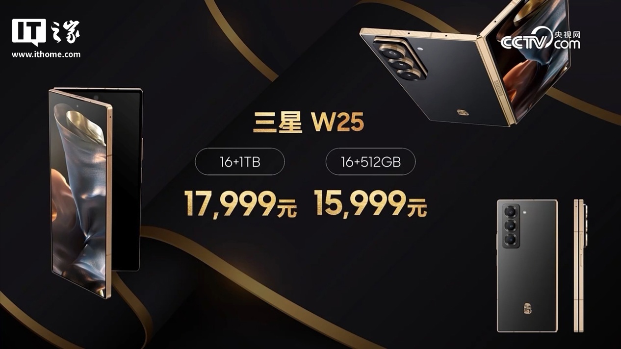 IT之家注意到,三星 W25 提供两个版,16+512GB 版售价 15999 元,16+1TB 版售价 17999 元,三星 W25 Flip 只提供 12+512GB 版,售价 9999 元,两款手机即日起开启预约,11 月 15 日全渠道开售。