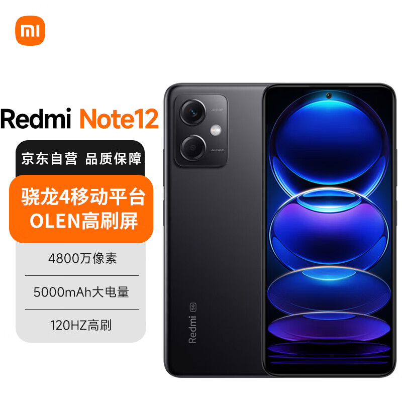 京东小米 Redmi Note12 5G 120Hz OLED 屏幕 8GB+128GB 子夜黑骁龙 4 移动平台 5000mAh 长续航 645.51 元直达链接