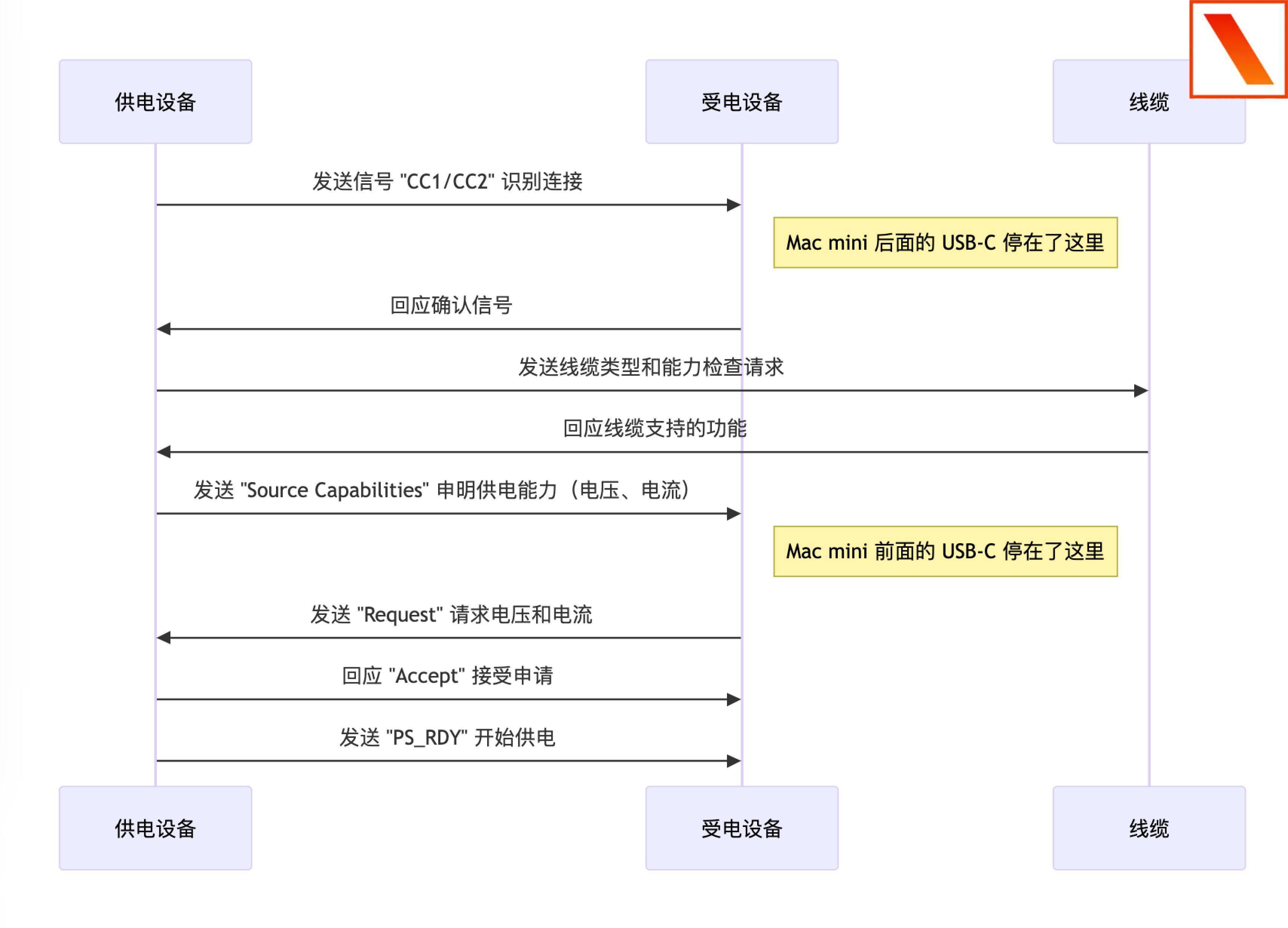 虽然我们通过制糖工厂 IonBridge 可编程 PD 电源和 Cypress CY4500 EZ-PD 成功捕捉到了含有 PD 快充协议芯片的电源和 Mac mini M4 Pro 的 PD 报文。