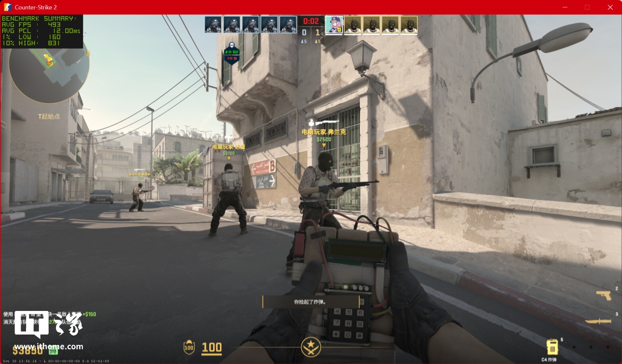 第一款《CS2》,以 1080P 分辨率 + 高画质运行创意工坊测试地图 CS2 FPS BenchMark。酷睿 Ultra 9 285K 游戏平均帧数为 493 帧,1% Low 帧 160 帧。