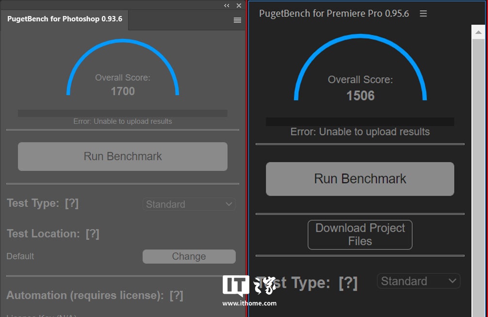 视频剪辑测试插件 PugetBench for PS 和 PR 中,酷睿 Ultra 9 285K 分别得到了 1700 分的 PS 成绩和 1506 分的 PR 成绩。