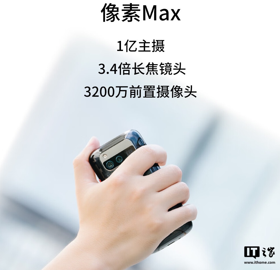 影像方面,Jelly Max 配备 1 亿像素主摄、800 万像素 3.4 倍长焦镜头与 3200 万像素自拍相机。