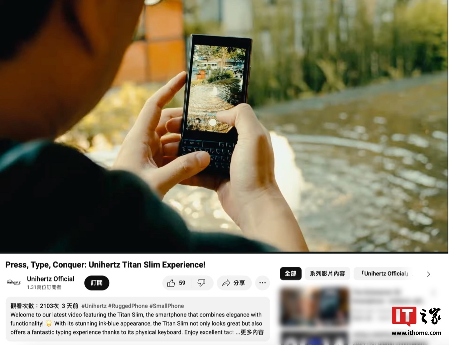 IT之家 11 月 10 日消息,Unihertz 11 月 7 日于 YouTube 平台投稿一款 2 年前发布的全键盘智能机 Unihertz Titan Slim 广告,并在评论区透露该公司将于今年底至明年初推出该机的继任者。