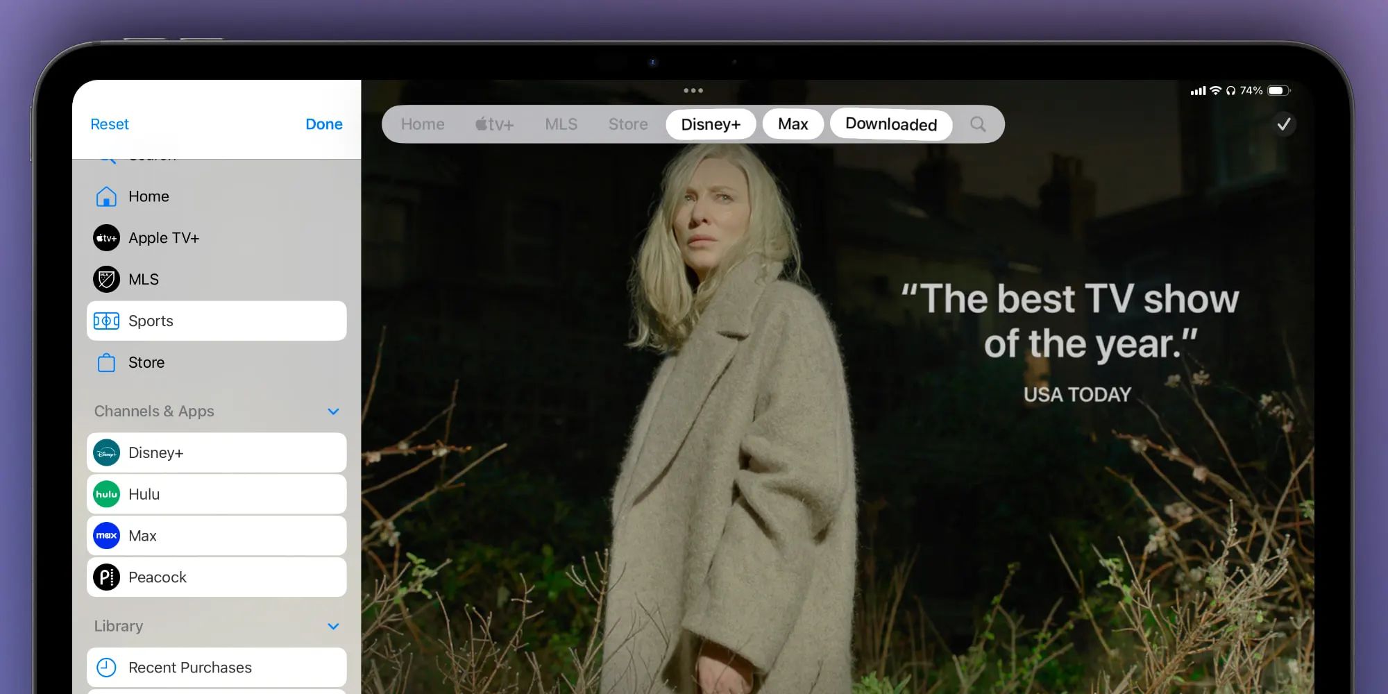 在 iPadOS 18.2 Beta 3 中,用户可自定义电视应用的导航栏,可以将任何侧边栏项目添加到标签栏,包括频道、应用、库和体育。