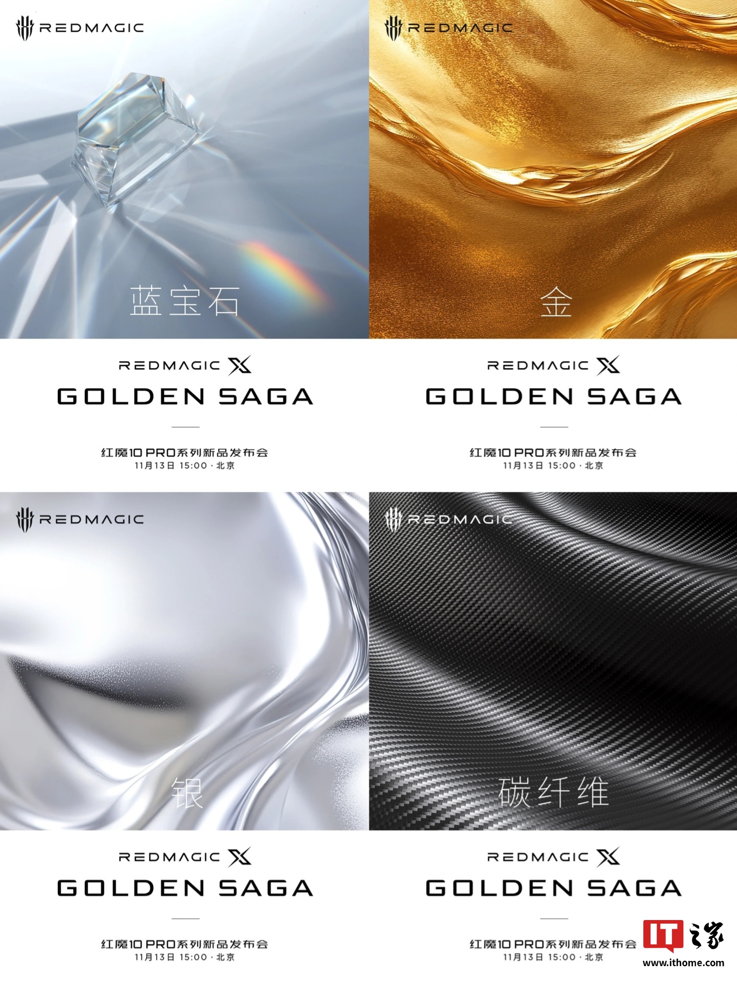 文章来源于互联网:IT之家-红魔 10 PRO 系列 X Golden Saga 特别版手机预热:搭载蓝宝石、金、银、碳纤维材料