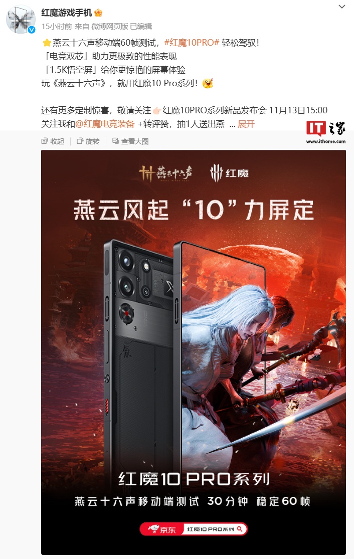 IT之家 11 月 13 日消息,红魔 10 Pro 系列游戏手机将于今日下午 15:00 正式发布,官方昨日公布了新机部分游戏适配情况。