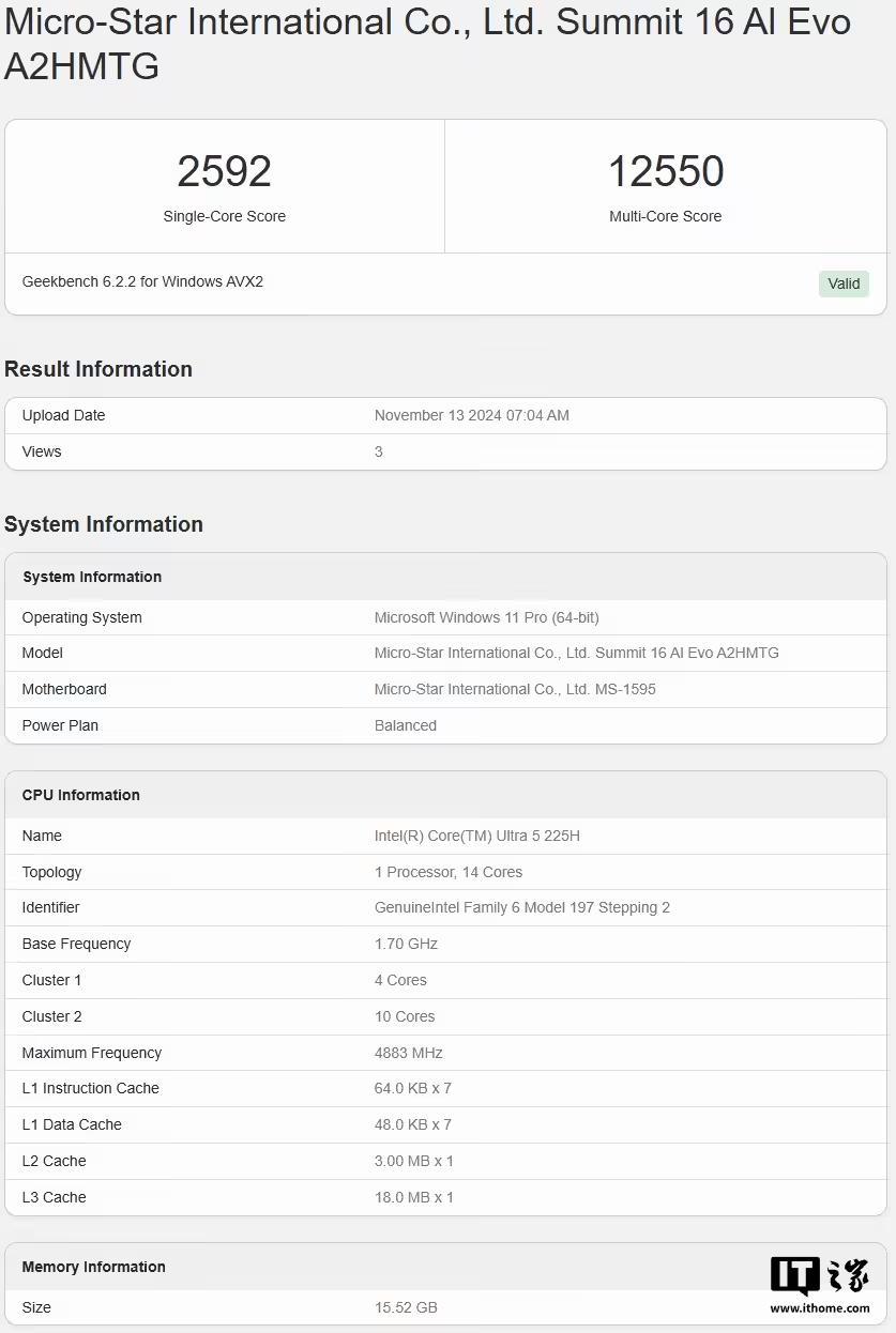 文章来源于互联网:凤凰网-英特尔酷睿Ultra 5 225H现身Geekbench,跑分超过i5-14500HX