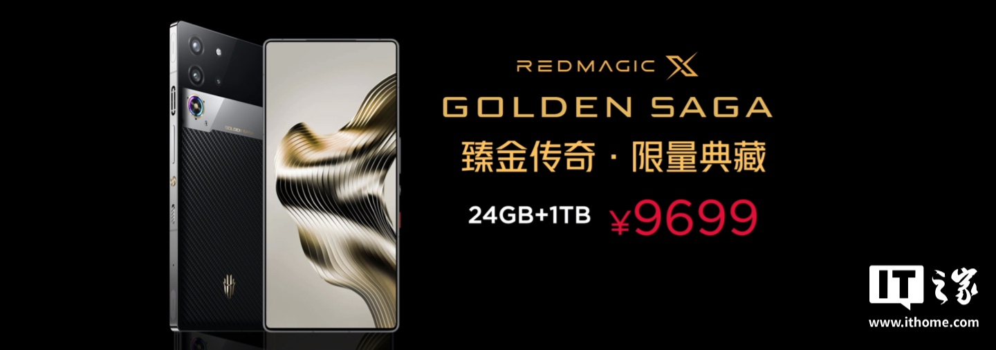 IT之家 11 月 13 日消息,在今天下午举行的红魔 10 Pro 系列新品发布会上,红魔官方发布了红魔 X Golden Saga 臻金传奇限量典藏版手机,24GB+1TB 版本售价 9699 元。