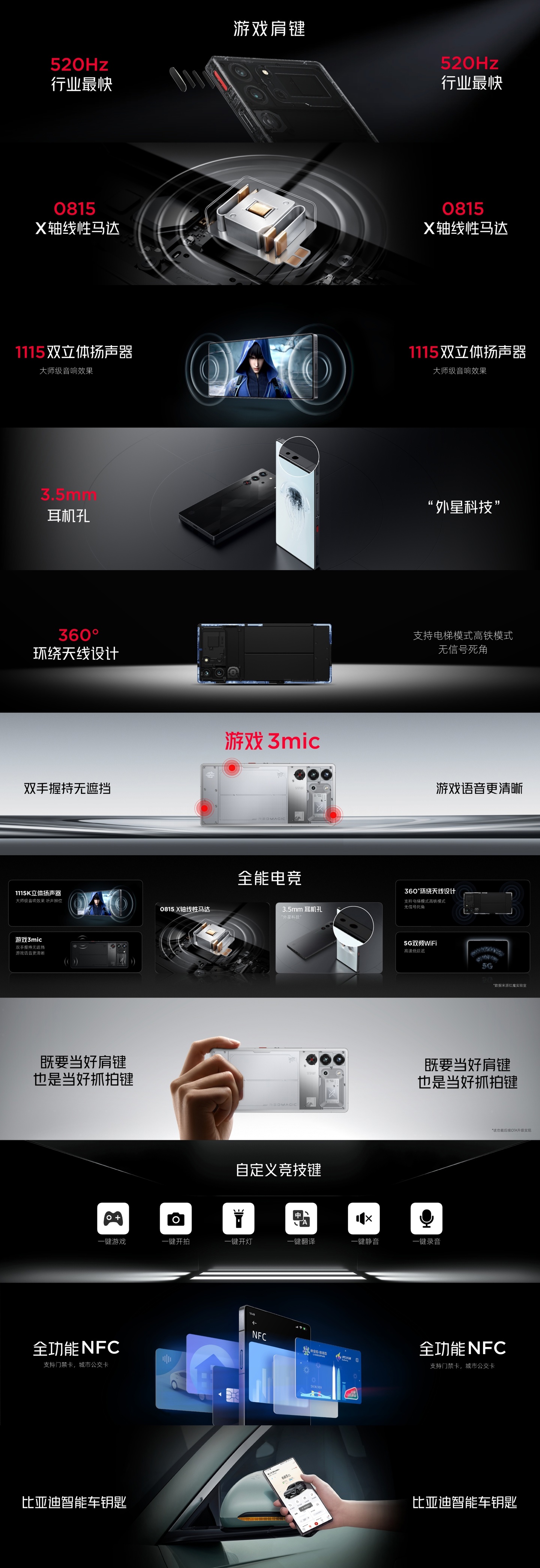 另外,红魔 10 Pro 系列手机还配备 520Hz 游戏肩键,支持自定义功能,包括:一键游戏、一键开拍、一键开灯、一键翻译、一键静音、一键录音等。
