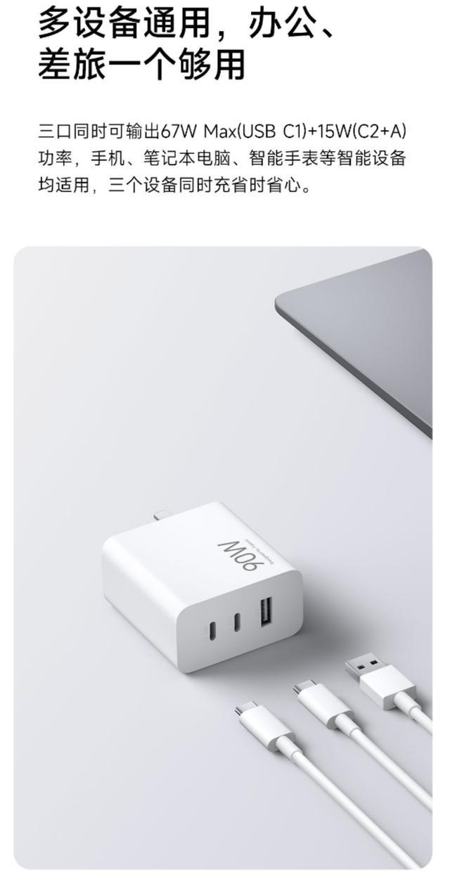 文章来源于互联网:凤凰网-小米推出90W GaN三口充电器套售价199元