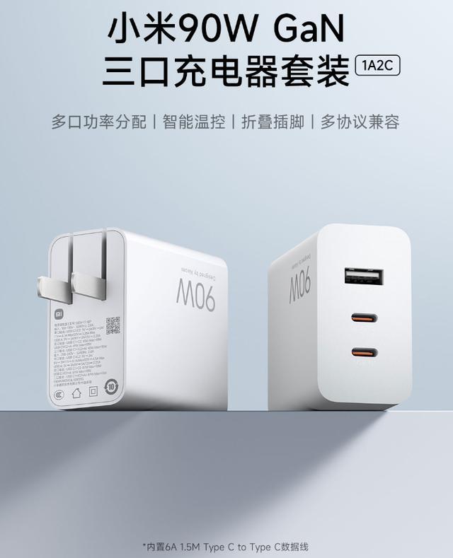 IT之家 11 月 13 日消息,小米推出一款 90W GaN 三口充电器套装,目前已在小米有品上架开售(点此购买)。该款充电器采用“1A2C”三口设计,支持多口功率分配、采用折叠插脚设计,售价 199 元。