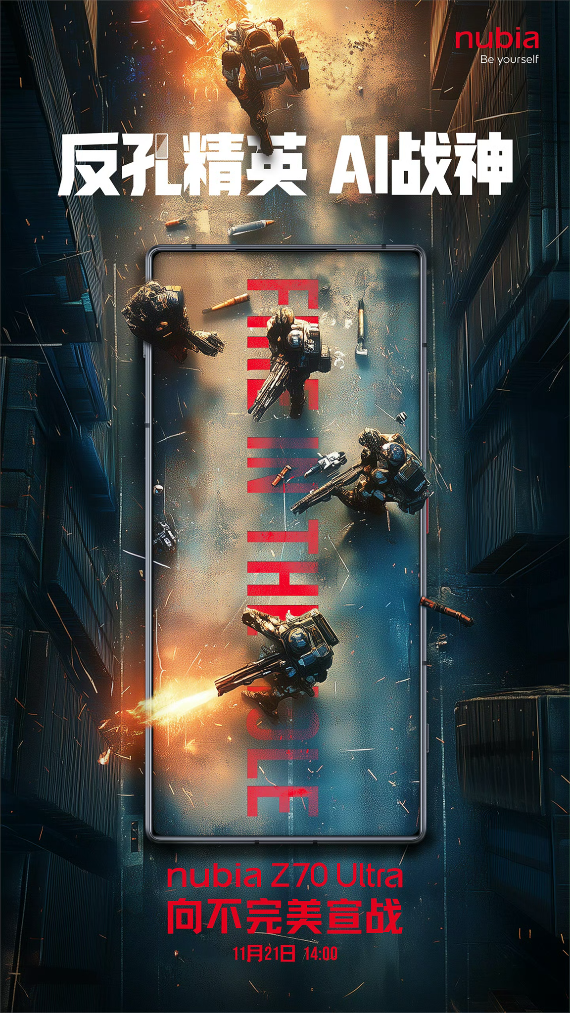 文章来源于互联网:IT之家-反“孔”精英:努比亚 Z70 Ultra 宣布 11 月 21 日发布