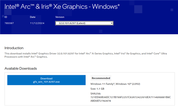 快科技11月14日消息,Intel今天发布了最新的6297版本显卡驱动,首次将原本分离的二代酷睿Ultra 200系列(Lunar Lake/Arrow Lake)专用驱动,整合在原版驱动中,实现了统一。